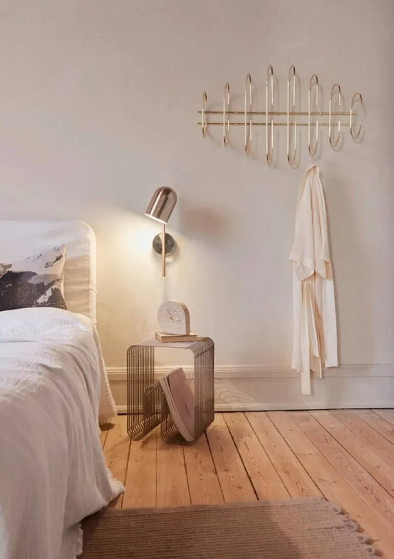 Curva-pallen från det danska märket AYTM fångar blicken med sin kurviga form och stiliga finish. Tillverkad av böjt och belagt järn är Curva inte bara en stark och praktisk pall, utan också ett uttrycksfullt dekorativt objekt. Curva-pallen fungerar utmärkt som en bekväm hallstol eller extra sittplats i vardagsrummet, och dess luftiga struktur gör att den också kan användas som en vägghylla.