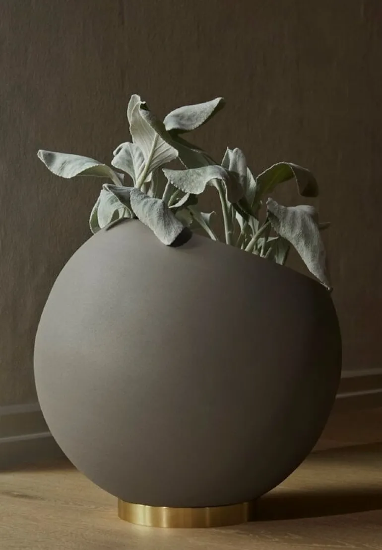 Globe-blomkrukan från danska märket AYTM är en fascinerande, rund vas i stål som står på en mässingfärgad järnbas. Blomkrukan passar perfekt för hemmaplantor och blommor, du kan även använda den till förvaring av mindre föremål. Blomkrukan kommer i olika storlekar och nyanser, och passar vackert i kombination med andra glasvaser från Globe-kollektionen.