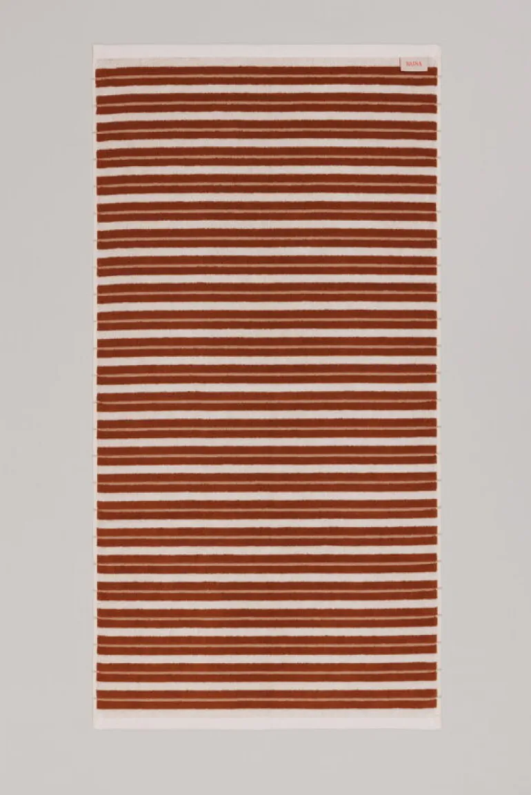 Badlakanet Franklin från Baina har ett fräscht tvåtonat randmönster med växlande tjocka vävda ränder och små schackrutemönster. Mönstret speglas på baksidan i motsatta nyanser. Badlakanet är tillverkat i tjock, ekologisk bomull och har en perfekt balans mellan absorberingsförmåga, mjukhet och snabb torktid.