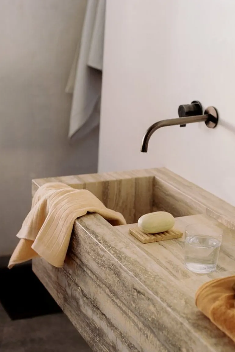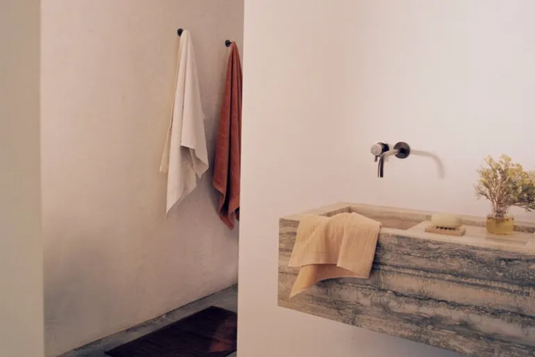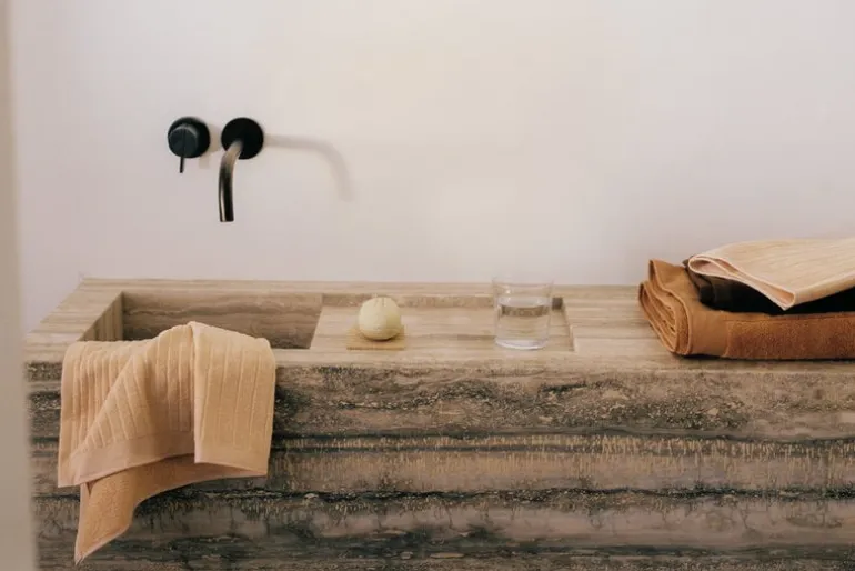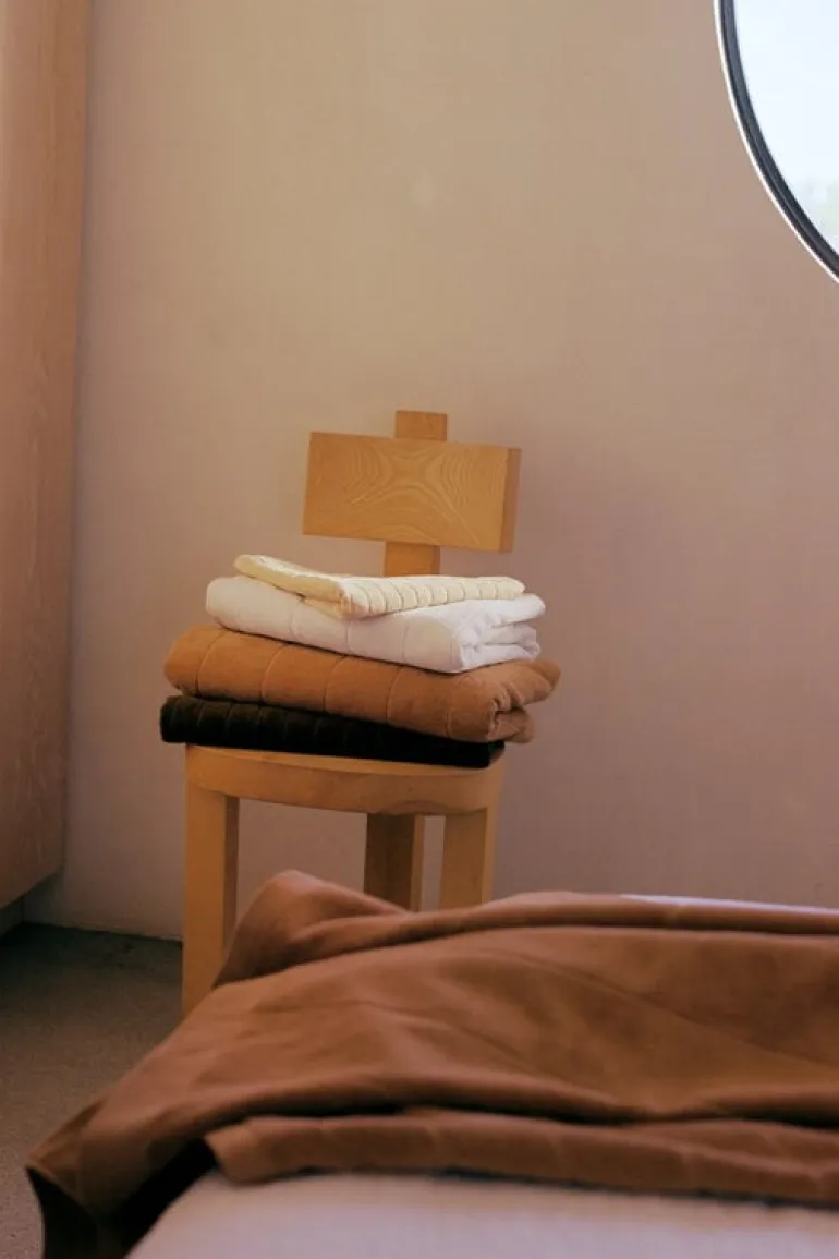 Handduksetet Baina x Estudio Persona består av fyra lyxigt mjuka handdukar i rika, jordnära umbra-nyanser. Handdukarna är designade av Estudio Persona och tillverkade av velour i tjock, ekologisk bomull, dekorerade med jacquardvävda, linjära mönster. Detta set i begränsad upplaga innehåller följande:
