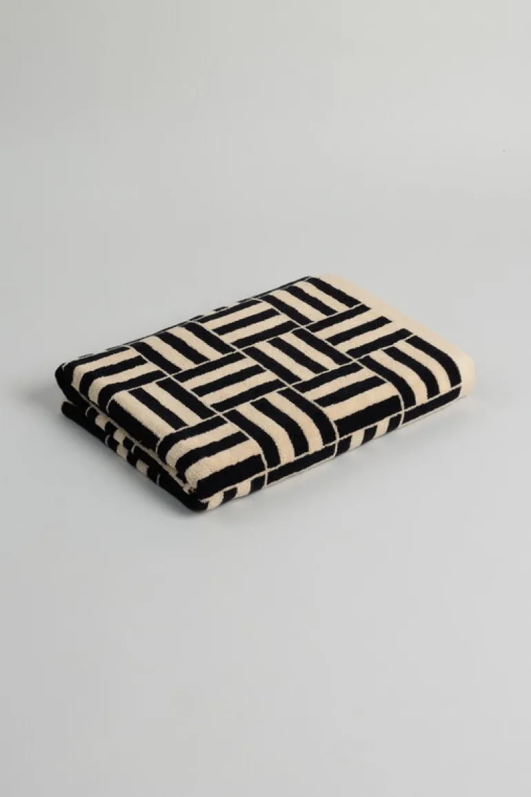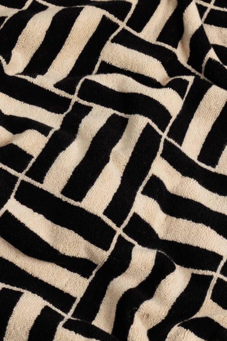 Bainas Willis-poolhandduk är smyckad med ett elegant geometriskt mönster. Denna badhandduk i frotté är tillverkad av fluffig, tjock ekologisk bomull och har en perfekt balans mellan absorberingsförmåga, mjukhet och snabb torktid. Den stora handduken är perfekt att svepa in sig i efter ett dopp, oavsett om det är vid poolen eller på stranden.