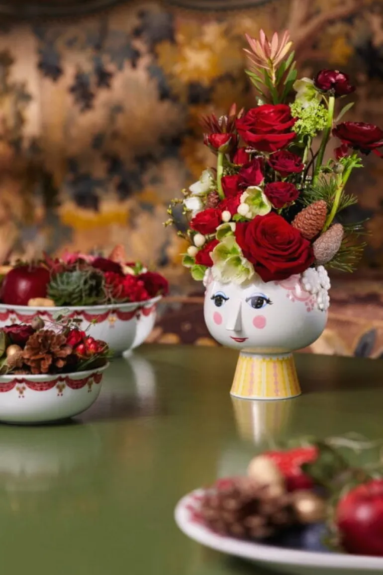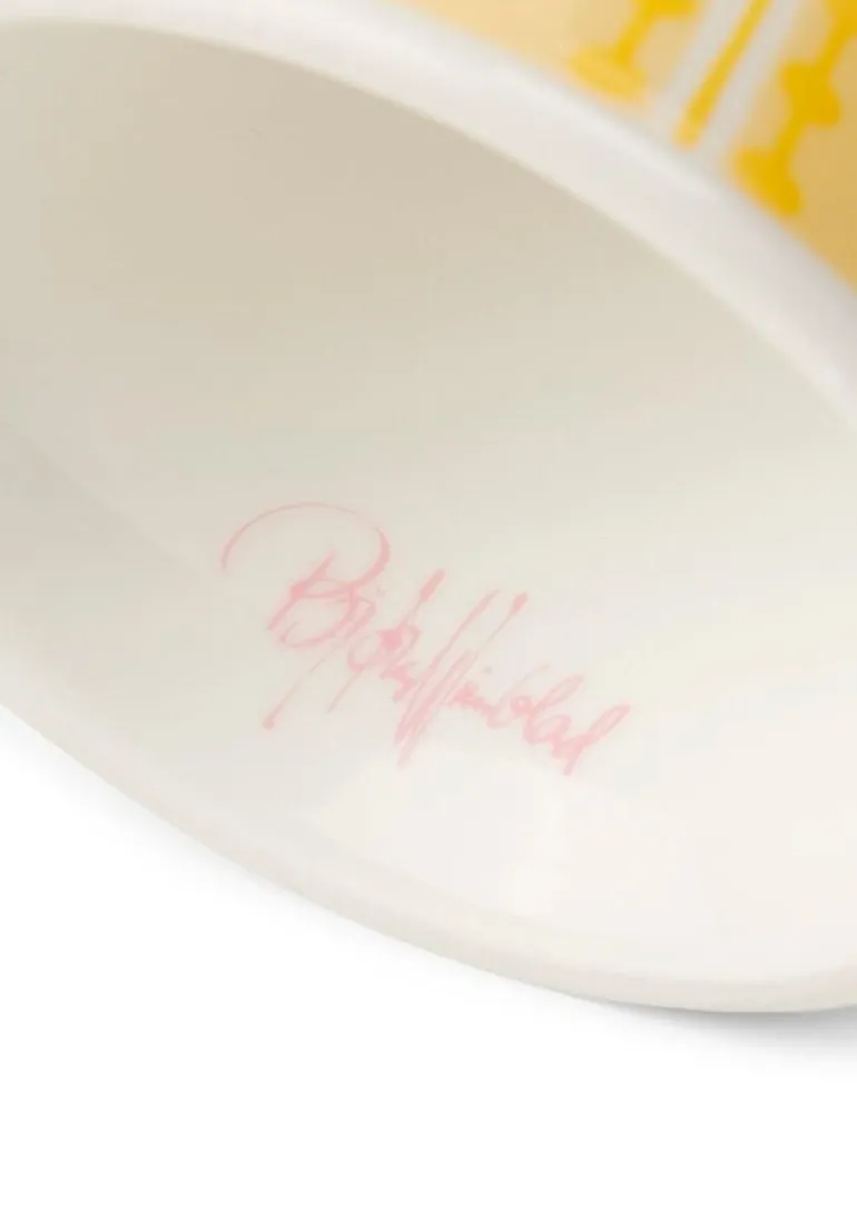 Den älskade danske konstnären Bjørn Wiinblad, känd för sin trolska stil och sina dekorativa detaljer, skapade många feminina figurer under sin karriär, där Eva kanske är den mest kända av dem alla. Delarna i Eva-kollektionen förkroppsligar Wiinblads sprudlande livsglädje och hans sinne för ornamental skönhet, som smittar av sig var man än ställer dem. Evas mandelformade ögon, spetsiga näsa, rosiga kinder och blida leende är Bjørn Wiinblads originaldesign, medan de dekorativa mönstren på dräkten är tolkningar av konstnärens arkiverade illustrationer.