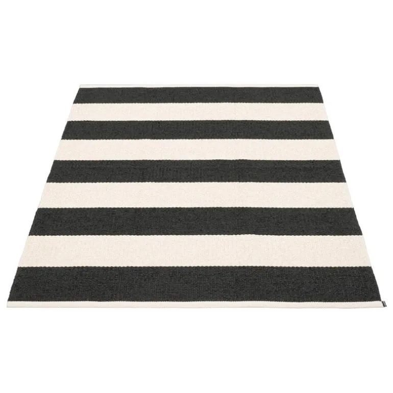 Plastmattorna Bob från Pappelina vävs på en traditionell vävstol i Dalarna. Mattorna är tillverkade av ftalatfria PVC-band och är slitstarka och lättskötta. Det randiga mönstret ger karaktär åt alla utrymmen, från köket, hallen och barnrummet till uteplatser. Mattorna har en präglad logotyp i båda ändar.