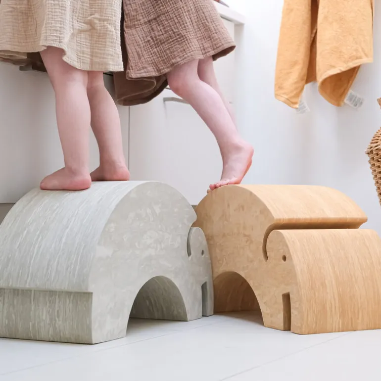 Den marmorerade Elefanten är en del av bObles’ Marble Nature-kollektion inspirerad av naturens element: jord, lera, sand, vatten och mossa. Seriens naturliga färger ger möblerna ett lugnt utseende som lätt smälter in i heminredningen även utanför barnrummet. Precis som andra tumlande bObles-möbler är Marble Nature-artiklarna tillverkade av lätt EVA-skum med en behagligt mjuk yta. Perfekt för både hem och klassrum, utmanar de roliga och funktionella möblerna också fantasin: de kan kombineras med varandra på en mängd olika sätt för att skapa barns gungor och hinderbanor.