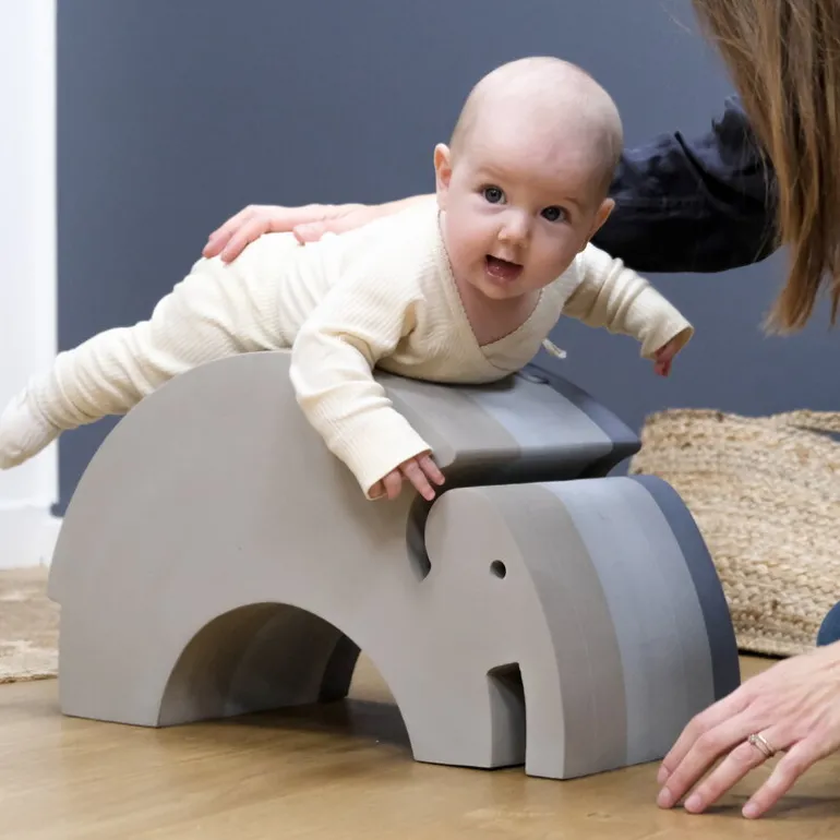 Elefant, skapad av danska bObles, är en charmig tumlande möbel. Den är designad för att uppmuntra barn att leka, röra på sig och lära sig, eftersom kroppskännedom skapar glädje och bygger självkänsla. Elefant är tillverkad av ftalatfri, lättrengjord skumgummi och är ett utmärkt sätt att stödja barns motoriska utveckling genom att utmana balansen. Den är också rolig att leka med och fungerar dessutom som en söt stol.
