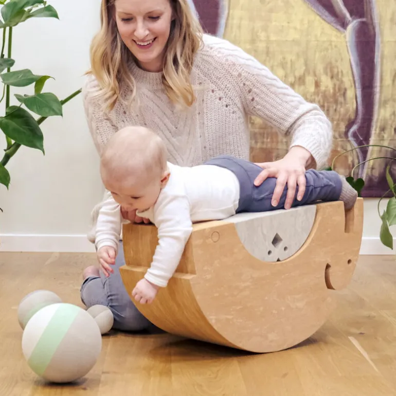 Kyckling från bObles är den perfekta leksaken för att hjälpa barn att lära sig balansera sina kroppar – och varför inte för vuxna också! Kyckling är designad för barn i alla åldrar: små barn kan gungas från sida till sida medan de ligger eller sitter på Kyckling, och äldre barn kan använda den stående som en rolig balansbräda. Kyckling passar även för bebisar; att ligga på magen på den stärker bebisarnas rygg och nacke. Om du vänder på Kyckling fungerar den som en liten stol.