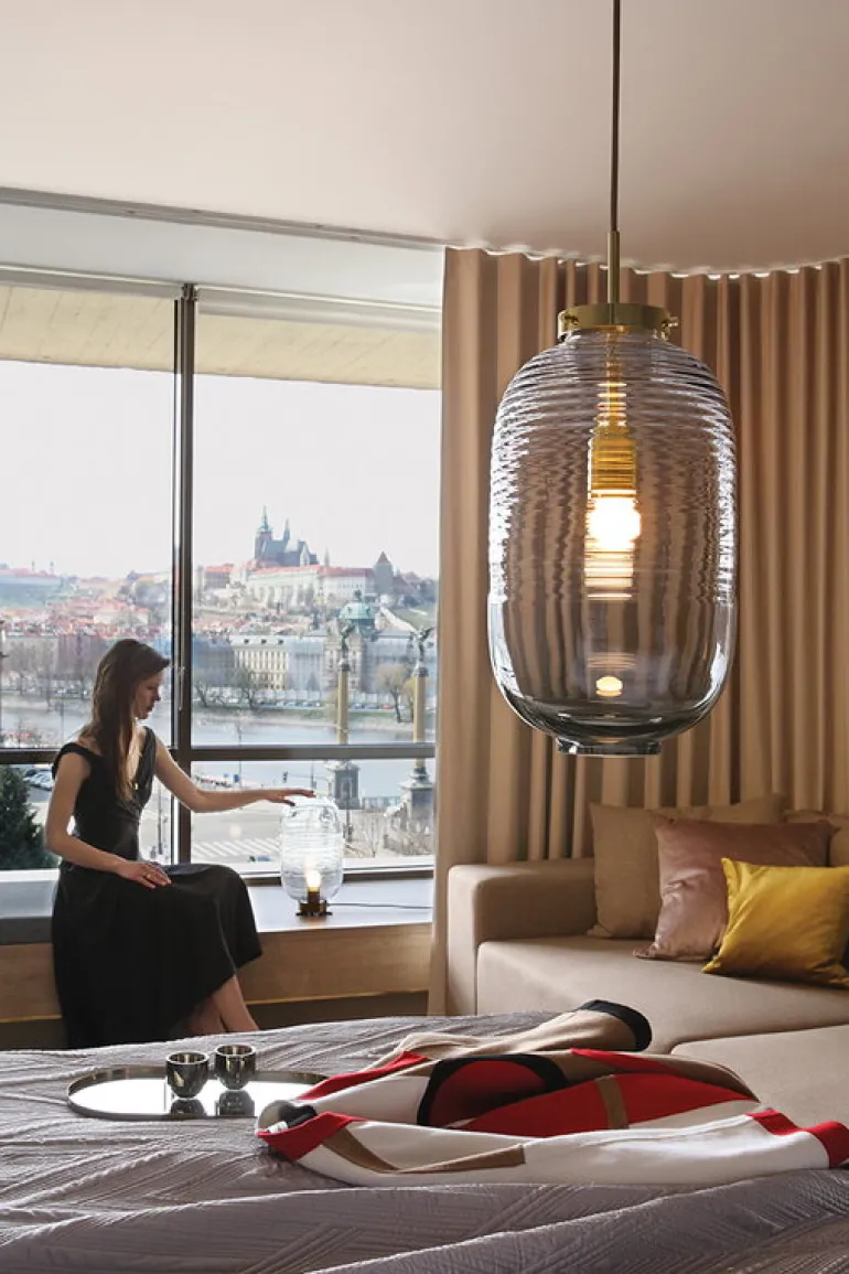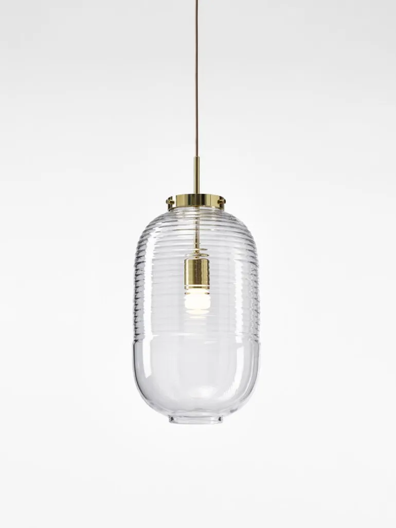 Bommas pendellampa Lantern är en nytolkning av den klassiska rislyktan i papper, fast i en modern design i glas. Den är tillverkad av munblåst kristallglas och lampans rena, eleganta form speglar den tidlösa känslan hos de japanska papperslyktorna, samtidigt som den visar upp det exceptionella hantverk som krävts för att skapa den minimalistiska formen. Oavsett om den visas upp som en fristående fokuspunkt eller i en grupp med flera skimmerlampor, så ger Lantern en harmonisk blandning av tradition och modernitet till alla utrymmen.