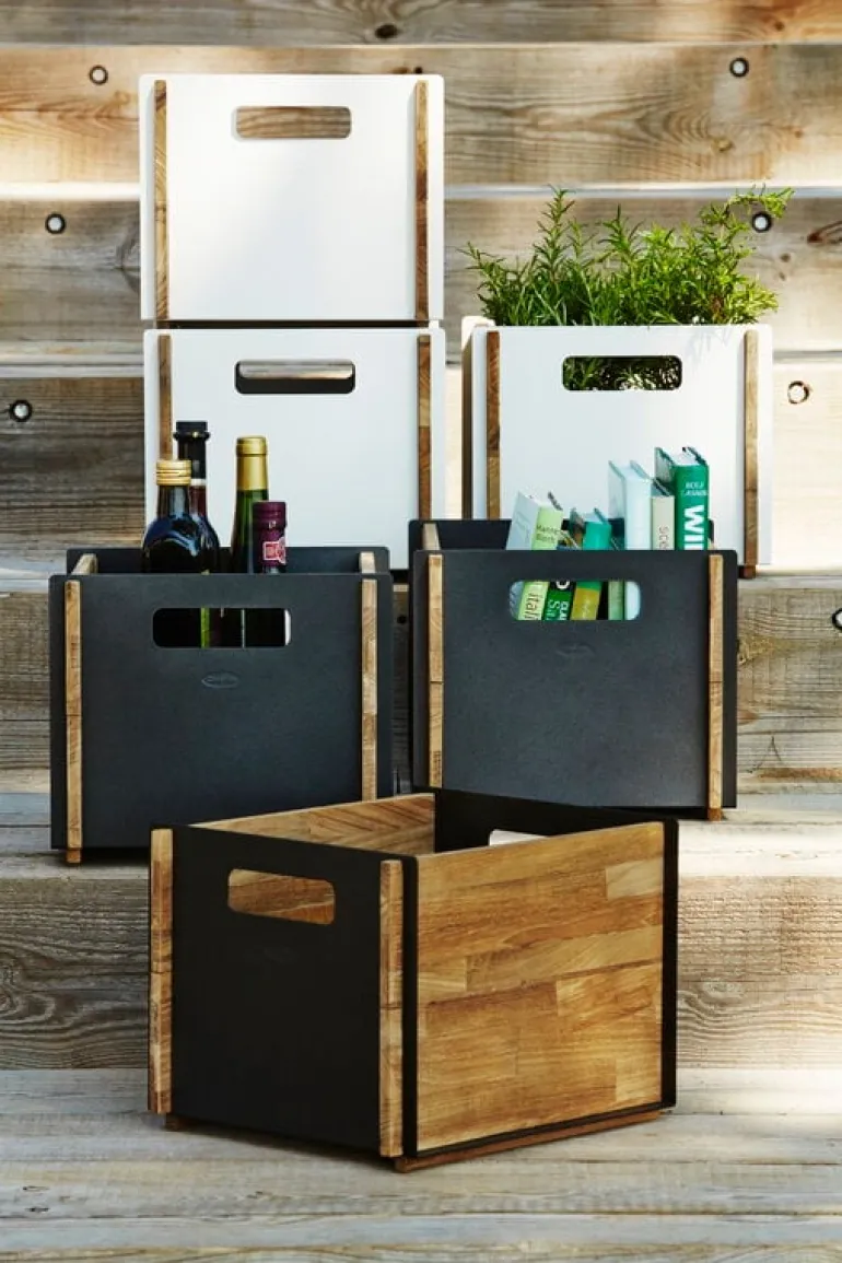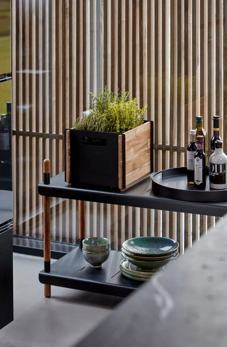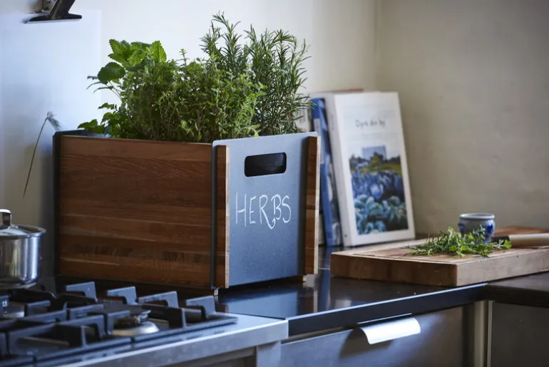 Box från Cane-line är en funktionell och hållbar förvaringslåda för alla typer av småsaker. Tillverkad av aluminium och teak, är denna väder- och vattentåliga förvaringslåda lämplig för både inomhus- och utomhusbruk. Du kan använda den för att förvara tillbehör till utomhusköket eller badrummet, böcker, kläder eller till och med färska örter, och du kan skapa en unik förvaringsenhet genom att stapla flera lådor på varandra. Den karakteristiska ytan på det hållbart odlade, certifierade teakträet ser vackert ut både inomhus och utomhus, och med tiden kommer det att få en charmig patina.