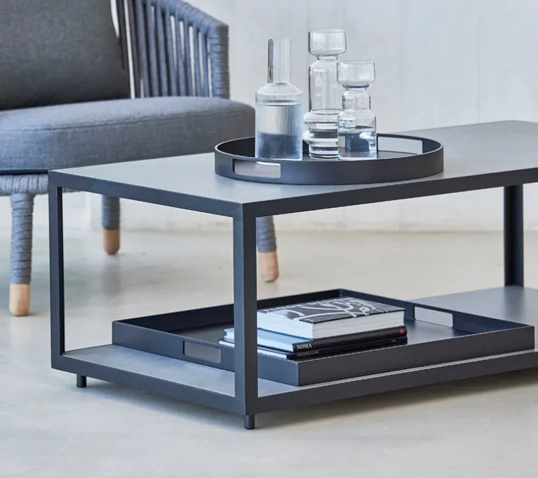 Club-brickan från Cane-line är en rymlig bricka designad för både inomhus- och utomhusbruk. Tillverkad av pulverlackerad aluminium har Club-brickan låga kanter och robusta handtag, och dess reptåliga yta har en hög ljusäkthet.