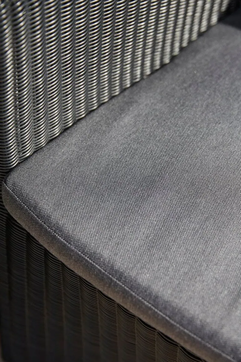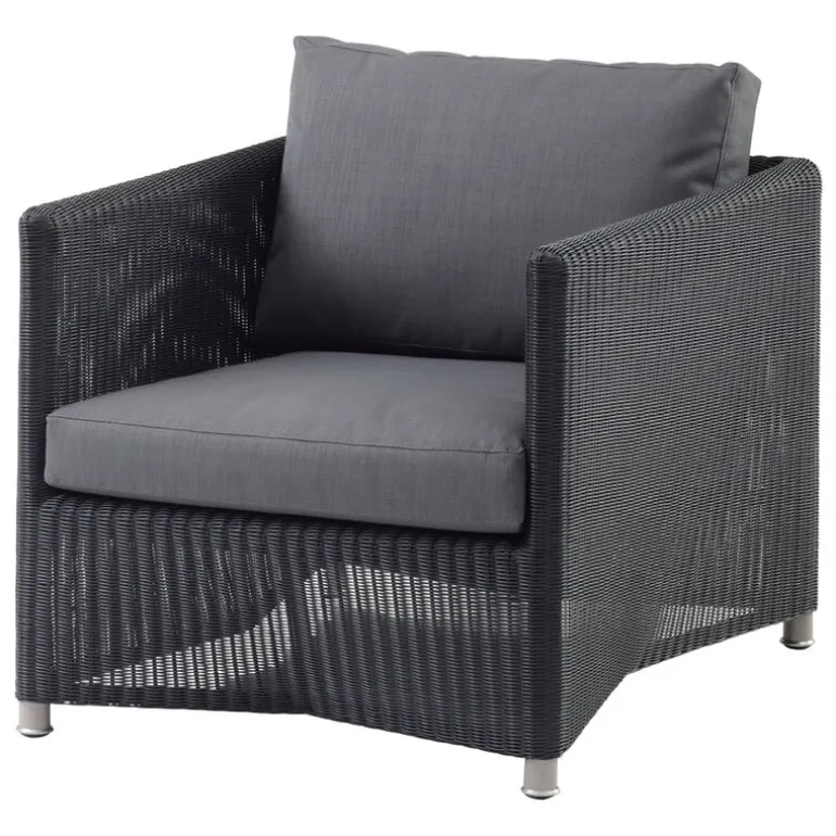 Cane-lies fåtölj Diamond har en strömlinjeformad design som passar perfekt i en sommar-oas på balkongen eller uteplatsen. Fåtöljen är designad av Foersom & Hiort-Lorenzen och är täckt med Cane-line Tex, ett polyestertyg av hög kvalitet som har tagits fram för att stå emot både regn och solsken. Fåtöljen har också bekväma kuddar med en skumfyllning som torkar fort och gör att de passar perfekt för utomhusbruk.