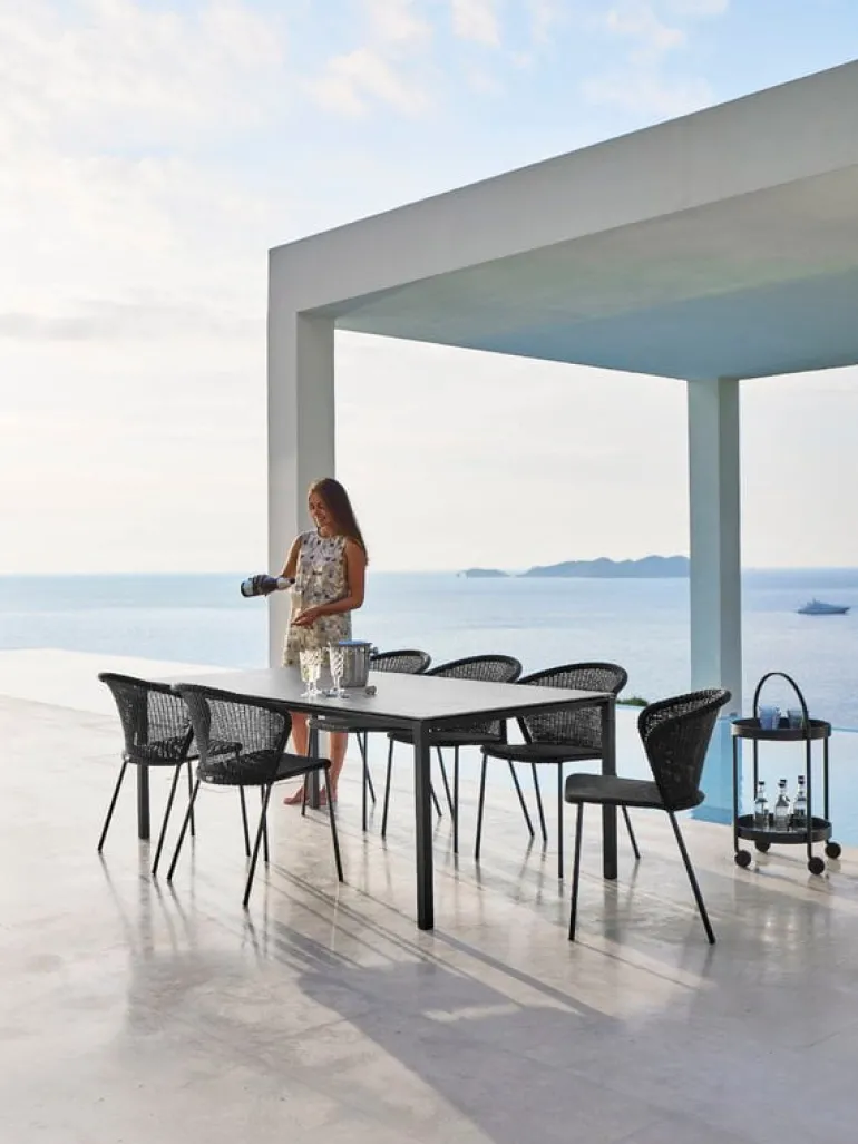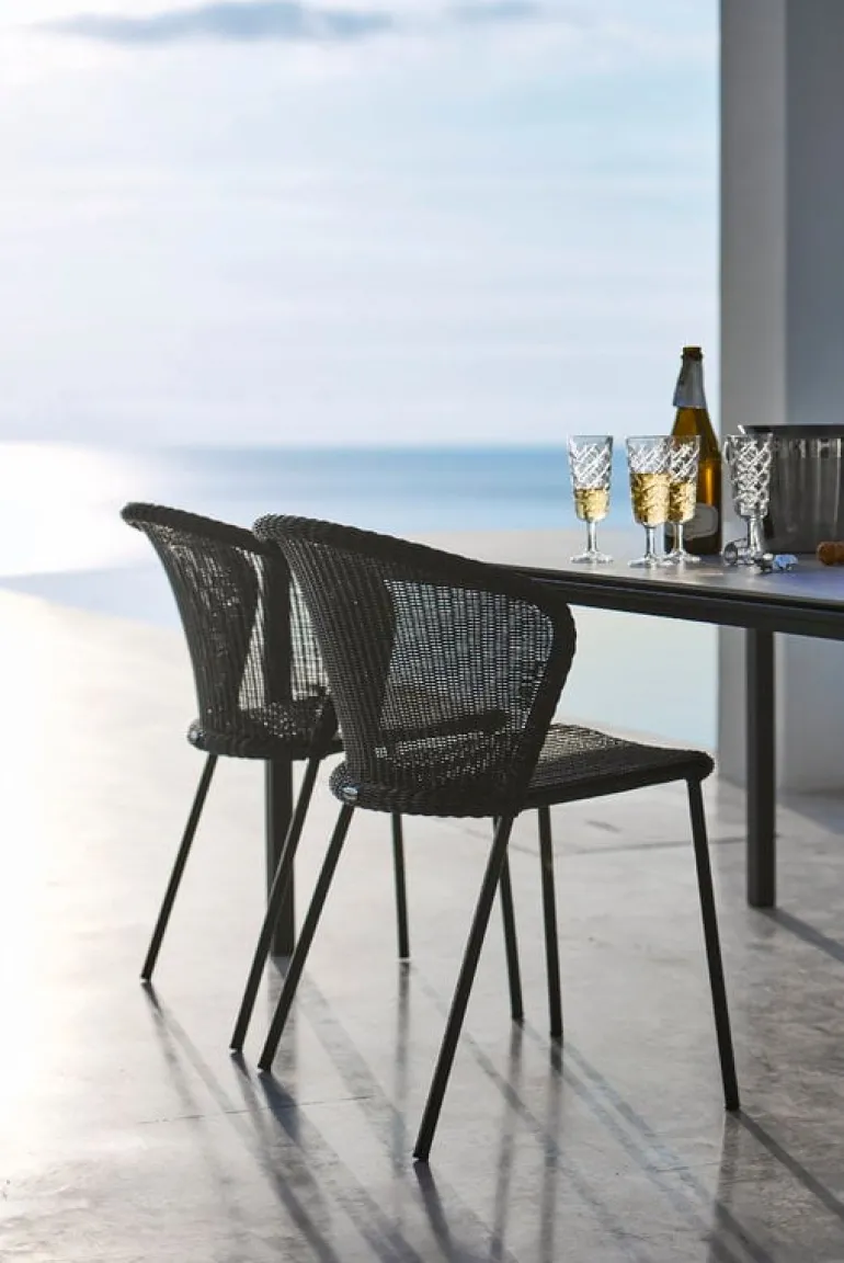 Stolen Lean från Cane-line ger terrassen, balkongen eller trädgården ett karaktärsfullt drag av modern, dansk design. Stolen Lean, framtagen av formgivarduon Welling/Ludvik, består av en rörram med bågformat ryggstöd och flätad, lätt genomskinlig sits, som ger stolen ett lättsamt och luftigt intryck. Polyetenfibrerna gör stolen underhållsfri och beständig mot UV-strålning, blekning och olika väderförhållanden. De lätta Lean-stolarna är stapelbara och kan förvaras i små utrymmen.