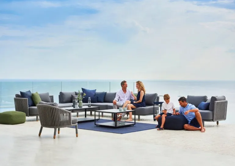 Cane-lines utomhusfåtölj Moments blir en sofistikerad del av inredningen på din balkong, i din trädgård eller i ditt sommarhus. Fåtöljen är designad av Foersom & Hiort-Lorenzeen och fåtöljens stålram är prydd med Soft Rope-väv som ger designen ett distinkt, men ändå mysig stil och känsla. Materialet är tillverkat av polypropen, som ger UV-skydd och är idealiskt för utomhusbruk. Som sista detalj har fåtöljen mysiga kuddar med systemet Cane-line QuickDry. Efter en regndusch torkar kuddarna och blir fluffiga igen på bara en timme.