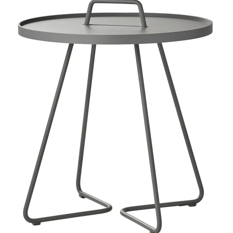 Cane-lines On-the-move är ett ljust och multifunktionellt sidobord som är lämpligt både för inomhus- och utomhusbruk. Bordet är tillverkat av slittåligt och lätt aluminium och har ett handtag. On-the-move är lätt att flytta från en plats till en annan. Den avtagbara bordsskivan fungerar också som bricka och kan lyftas av och användas separat. On-the-move är ett perfekt sidobord för terrasser, balkonger eller trädgårdar och passar också som ett modernt och praktiskt soffbord i vardagsrummet. Bordet designades av den danska designbyrån Stand+Hvass.