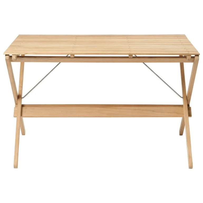 Carl Hansen & Søns BM3670-bord är en del av Børge Mogensens omformulerade Deck Chair-utemöbelserie, skapad av den legendariska designern på sena 1960-talet. Det eleganta BM3670-trädgårdsbordet utstrålar den enkla funktionaliteten i Shaker-stilen, och dess minimalistiska form fångar ögat. Med åren lägger naturlig patina till ännu mer karaktär till stycket när teaken blir en vacker silverfärg.