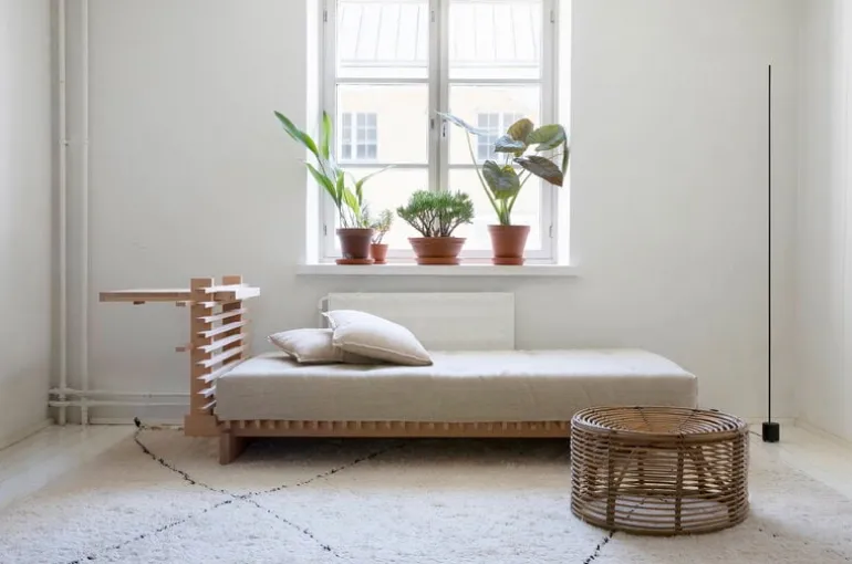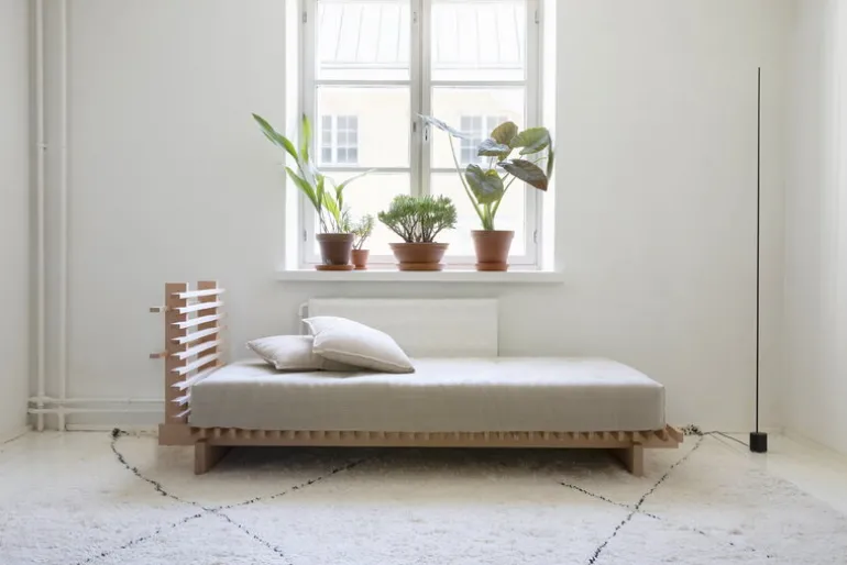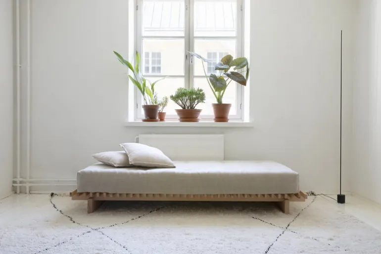 Sängen Cubile 100 från Collaboratorio har fått sitt namn efter sängarna i det antika Rom: ordet cubile betecknar inte bara en faktisk säng, utan mer generellt en plats för vila. Den vackert naturliga obehandlade boken framhäver Cubiles enkla form och ger en känsla av lugn till sovrummet. Sängen passar en 100×210 cm madrass och är 21,5 cm hög, och den kan monteras utan några skruvar eller verktyg. Den sparsmakade och eleganta Cubile är det perfekta valet för ett minimalistiskt hem.