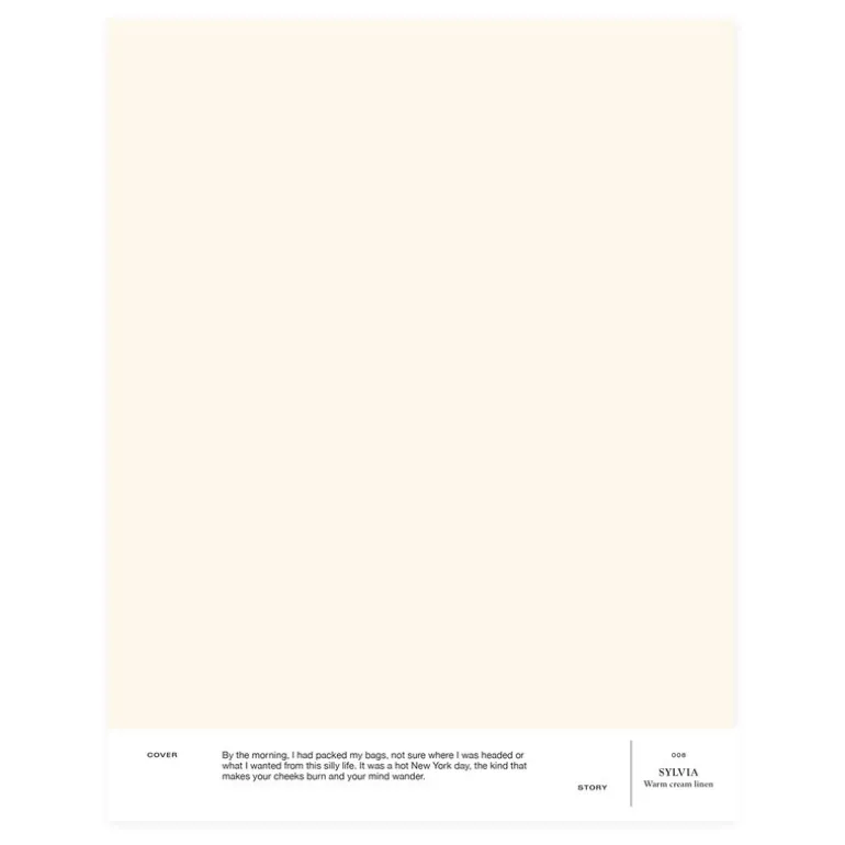 Nyansen 008 Sylvia är en gräddbeige färg, vars mjuka gula undertoner gör färgen perfekt för utrymmen med en rogivande, naturlig känsla. Färgen är matt och ger ytan en sammetsliknande finish.