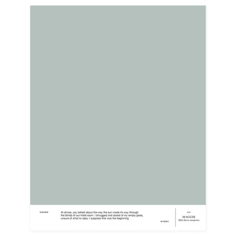 Inomhusfärgen 017 Maggie från Cover Story är en mellangrå färg med gröna undertoner som bäst kommer fram när ljuset träffar den målade ytan – det är då den dammiga grönaktiga nyansen verkligen kommer till sin rätt. Maggie passar bra, till exempel, med mörkt trä, och den har en platt glans som ger en matt, icke-reflekterande finish på den målade ytan.