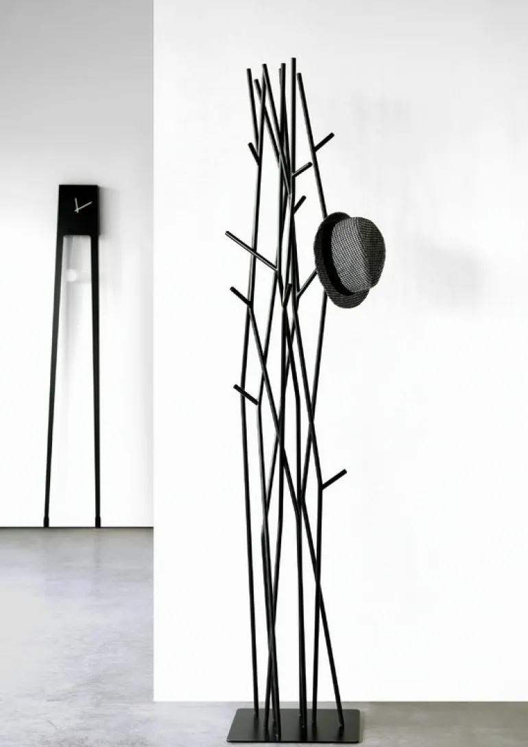 Den fristående klädhängaren Latva från Covo skänker glädje med sin tidlösa svarta färg och organiska form som påminner om trädgrenar – ”latva” är finska och betyder trädtopp. Latva-klädhängaren, som skapades av den finska designern Mikko Laakkonen, fick stor uppmärksamhet på möbelmässan i Milano 2006, och snart tog det italienska märket Covo med Latva i sin kollektion. Förutom en praktisk och robust stålhängare är Latva även ett skulpturalt inredningselement som fungerar som en fascinerande rumsavdelare när flera klädhängare ställs på rad. Covos Latva-klädhängare är en frisk fläkt av skandinavisk design i hallen eller omklädningsrummet, och piffar även upp offentliga utrymmen på ett smart sätt.