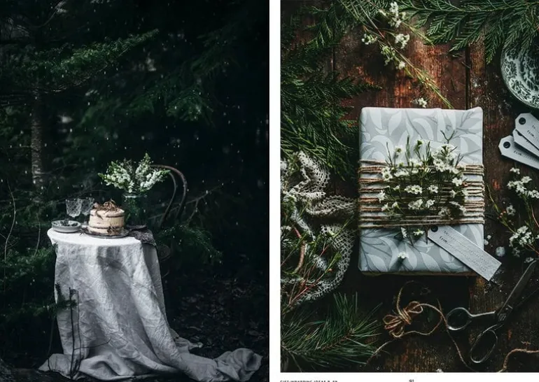 För en före-julcocktailfest, finess skivor av skärgårdsbröd med pikant äpple & sikromtartar och grönsakscarpaccio. Fira det nya året genom att duka bordet med blinis. Efter en dag i snön på Fettisdagen finns det inget som att krypa upp med klassisk laxsoppa och gräddfylld ’semla’. Dekorera festbordet med en krans av städsegröna och servera lite krämig kronärtskockssoppa, gin & rödbetor gravad lax, en ny version av finsk ’rosolli’-sallad och parmesan & timjan broccoli. Vad sägs om lite sammetslen kardemummakaka, läckra pepparkakstiramisu eller havtorn cheesecake till efterrätt?