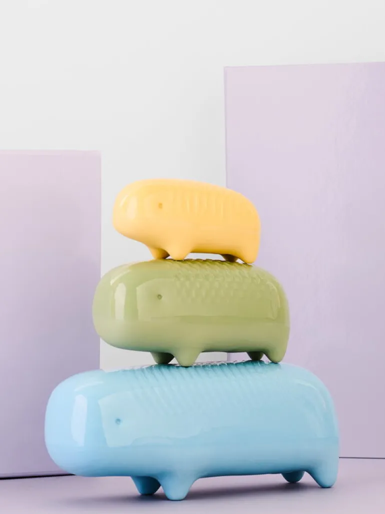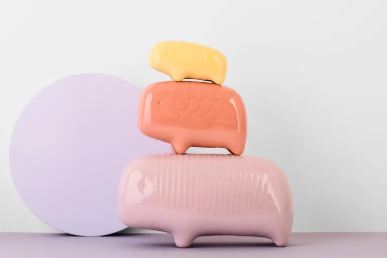 Urdjuret finns i olika storlekar och i tre färgfamiljer: naturliga nyanser, blågröna nyanser och röda nyanser. Pastel pink hör till den sistnämnda kategorin. I varje färgfamilj har skulpturen i storlek XS ett randigt mönster på den glaserade baksidan som kan variera något mellan de enskilda skulpturerna. Den exakta placeringen av själva glasyren eller djurets ögon kan också variera – varje urdjur är unikt.