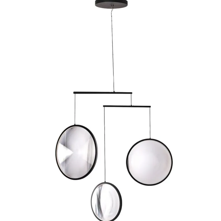 Focus X3 hänglampa från DCWéditions är en fantastiskt vacker ljuskrona. Designad av Yuji Okitsu, liknar armaturen en mobil som rör sig och roterar när luftflödet berör den. Hänglampan består av tre akrylglas-skivor utrustade med LED-lampor. Den ständiga lilla rörelsen och ljusets brytning genom glaset gör Focus X3 till ett ständigt föränderligt konstverk, som utstrålar och reflekterar bländning i alla riktningar och omgivande ytor.