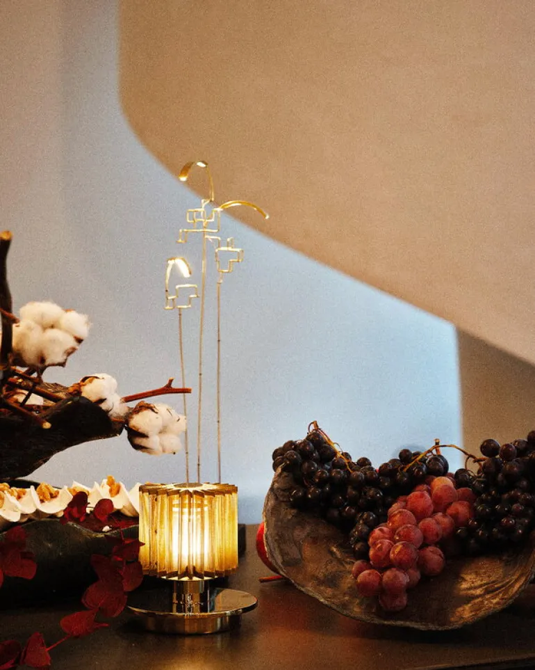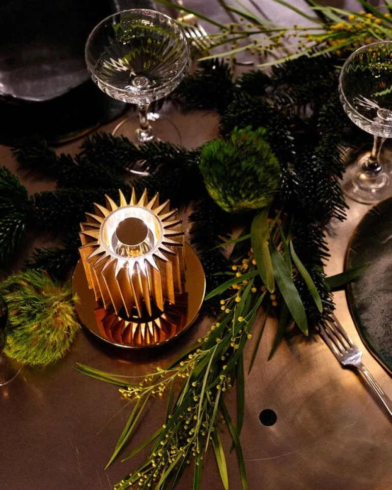 DCW éditions bordslampa In The Sun består av en stålfot och en fascinerande böjd skärm i metallmesh som gör att In The Sun inte bara skapar trivsam belysning, utan också en vacker halo som påminner om solsken. Bordslampan i guld eller silver är sladdlös och laddas med en USB-kabel. In The Sun kan lysa i upp till 7 timmar på en enda laddning beroende på vilken ljusstyrka du väljer.