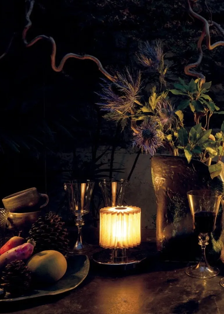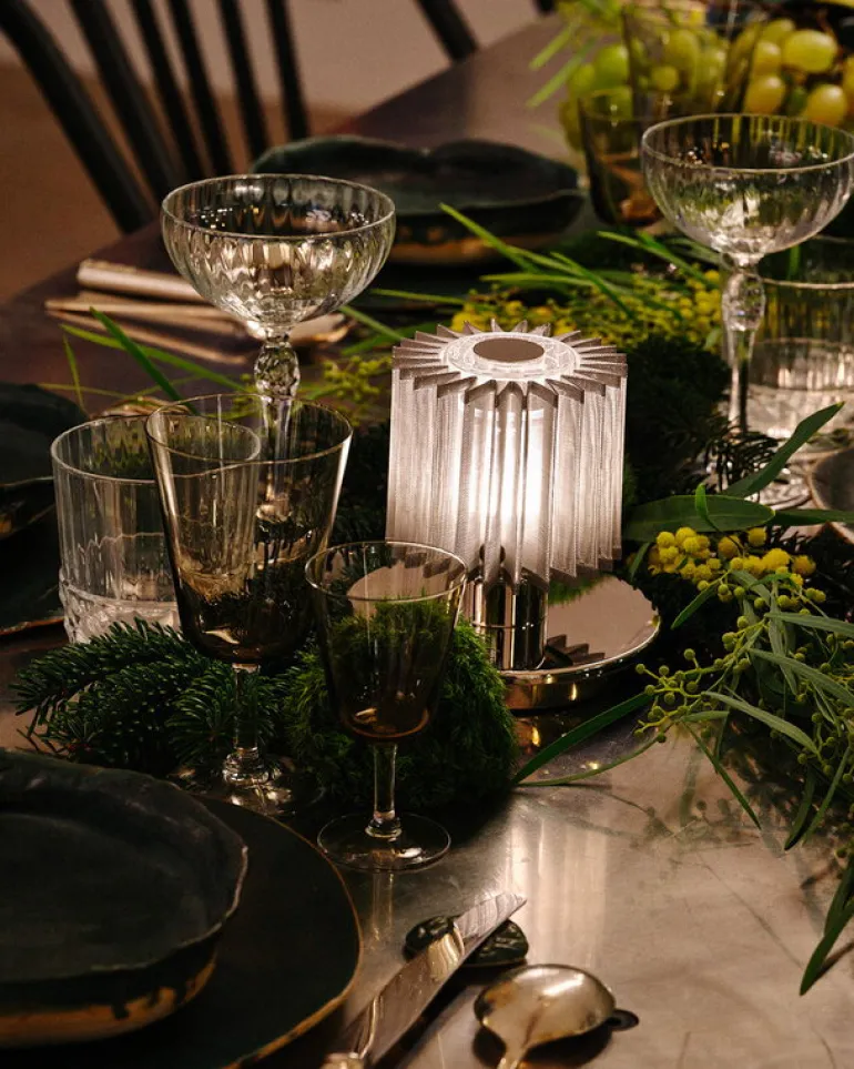 DCW éditions bordslampa In The Sun består av en stålfot och en fascinerande böjd skärm i metallmesh som gör att In The Sun inte bara skapar trivsam belysning, utan också en vacker halo som påminner om solsken. Bordslampan i guld eller silver är sladdlös och laddas med en USB-kabel. In The Sun kan lysa i upp till 7 timmar på en enda laddning beroende på vilken ljusstyrka du väljer.