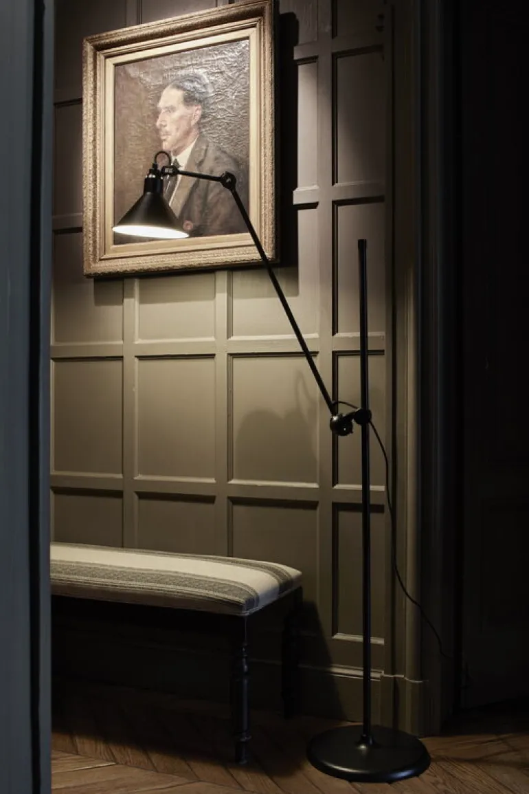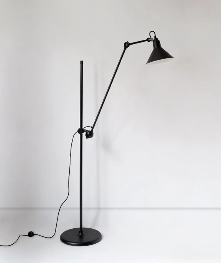 Golvlampan Lampe Gras 215 är en del av den ikoniska Lampe Gras-kollektionen, designad av Bernard-Albin Gras och återlanserad av DCW éditions. Lampe Gras 215 är tillverkad i robust och stilrent stål, och har en stavbas, justerbar arm och den ikoniska lampskärmen.
