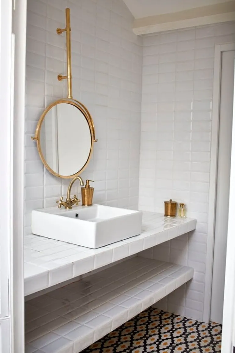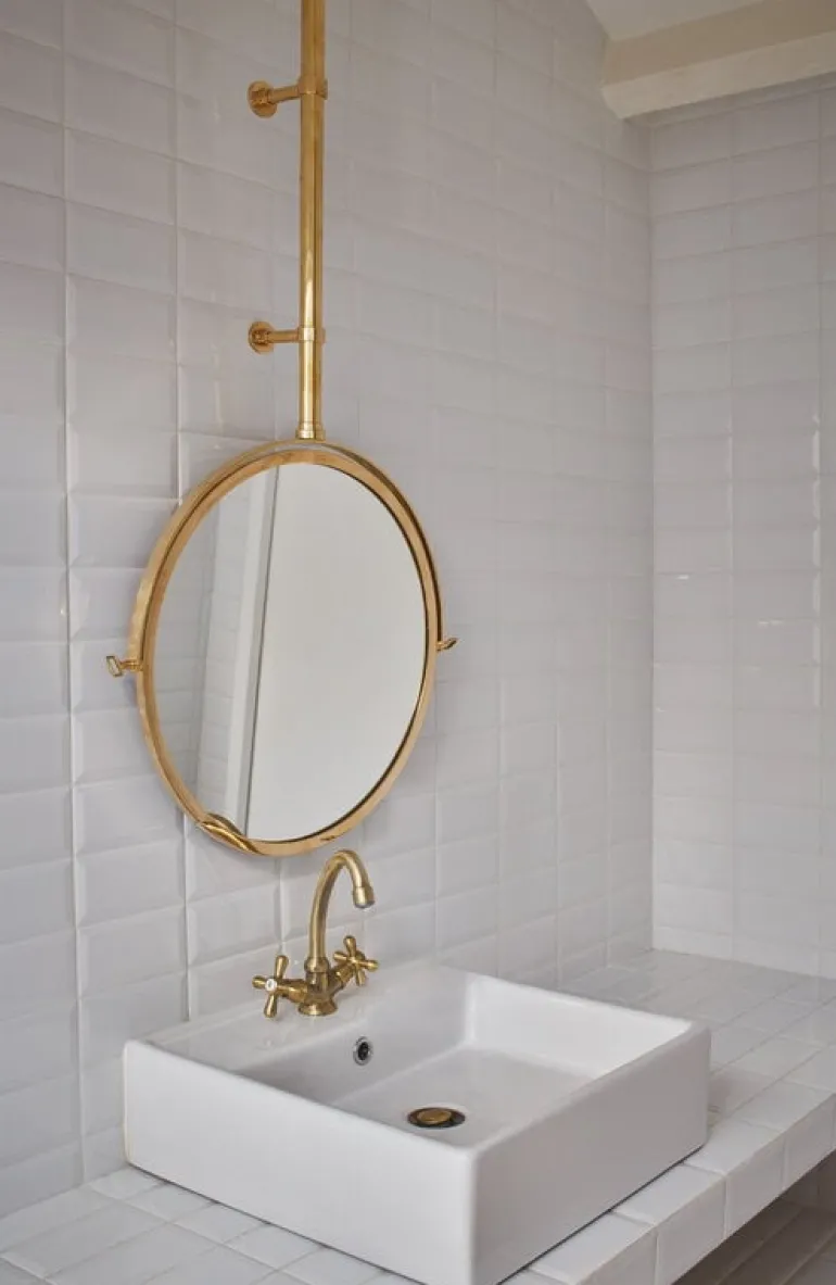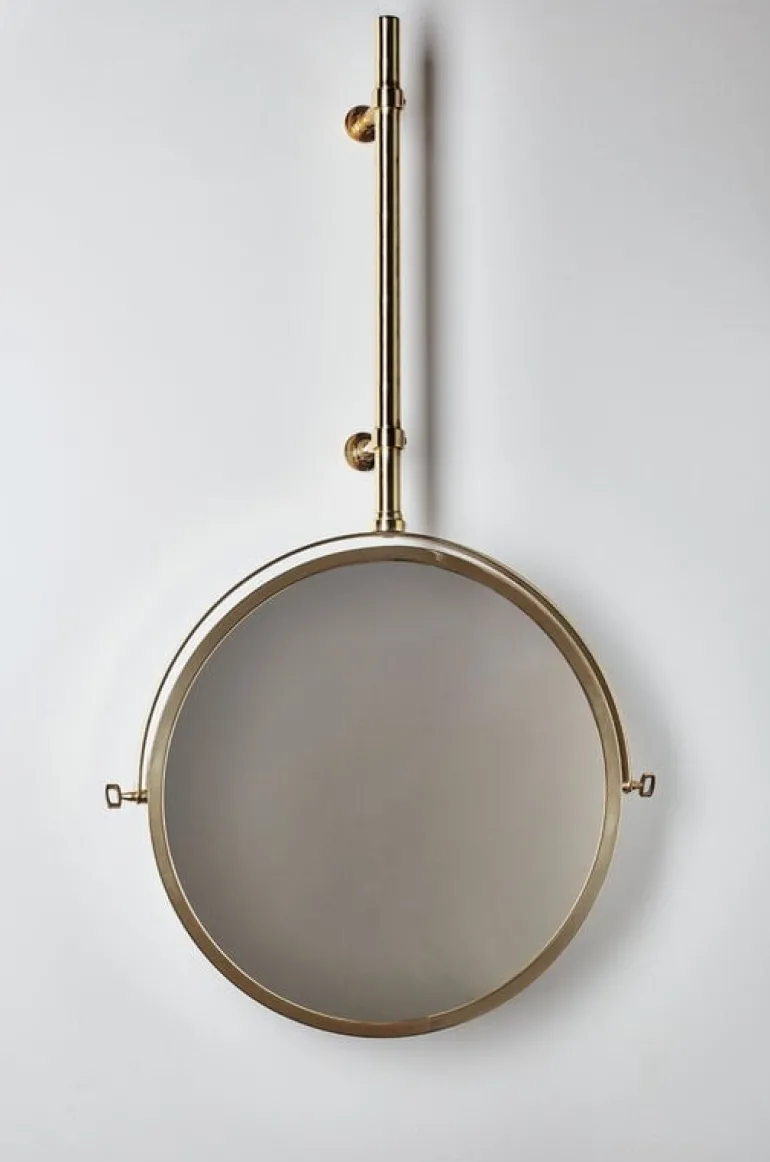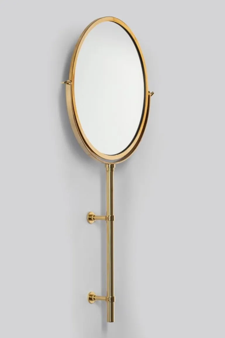 Spegeln MbE har inspirerats av speglarna på hattavdelningen i varuhuset La Samaritaine i Paris. Formen på spegeln är klassisk och elegant, men ”vattenröret” är ett överraskande inslag i kompositionen. Ge badrummet ett parisiskt drag med spegeln MbE eller skapa ett arrangemang av speglar för att smycka väggen i ditt vardagsrum.