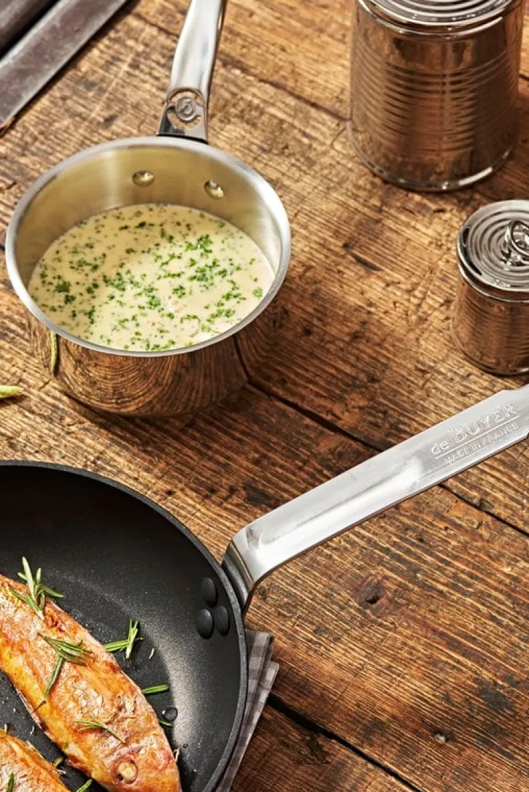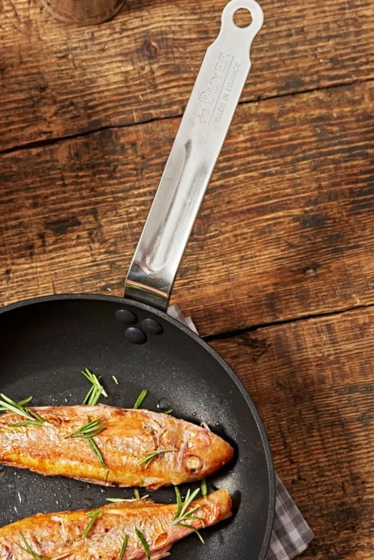 De Buyers Choc Intense 20 cm stekpanna är idealisk för tillagning av omeletter, grönsaker eller vit fisk. Den har fulländats med ett vackert böjt stålhandtag och aluminiumpannan har en stilig men traditionell look.