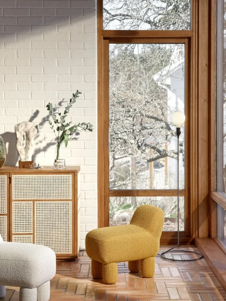 Skänken Air från Design House Stockholm har formgivits av Mathieu Gustafsson. Det kombinerar ett starkt grafiskt uttryck med ljus rottingväv som låter ljuset leka i det öppna mönstret. Rottingväven gör också att skänken får en mycket bra ventilation, perfekt för förvaring av textilier eller elektronik. Sin funktionella utformning till trots utgör Air även ett effektfullt blickfång i rummet, särskilt om man placerar en lampa inuti den.