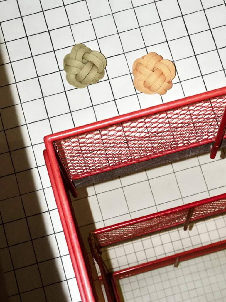 Design House Stockholms härliga kudde Knot designades 2011 av Ragnheiður Ösp Sigurðardóttir. Den isländska formgivaren letade efter ett mer effektivt sätt att tillverka de långa benen på sina virkade nallar och började experimentera med maskinstickning. Resultatet blev en kollektion med knutliknande kuddar, Notknot, och Design House Stockholm lanserade en av kuddarna år 2016 under namnet Knot. Knot, som består av rör av ull som fyllts med stoppning, utmanar de traditionella kuddarna och livar upp varje soffa, säng och fåtölj.