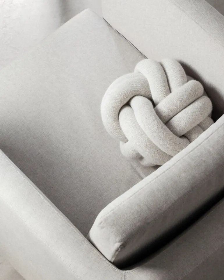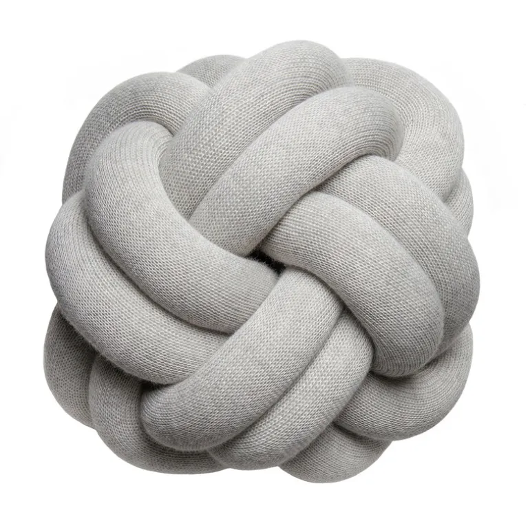 Design House Stockholms charmiga Knot-kudde designades av Ragnheiður Ösp Sigurðardóttir år 2011. Den isländska designern letade efter ett mer effektivt sätt att tillverka de långa benen på sina virkade nallar och började experimentera med maskintillverkade stickningar. Hon slutade med en kollektion av knutliknande kuddar kallade Notknot, och Design House Stockholm lanserade en av designerna 2016 under namnet Knot. Tillverkad av en stoppad ulltub, ifrågasätter Knot traditionella kuddar och piggar upp alla soffor, sängar och lounge-stolar.