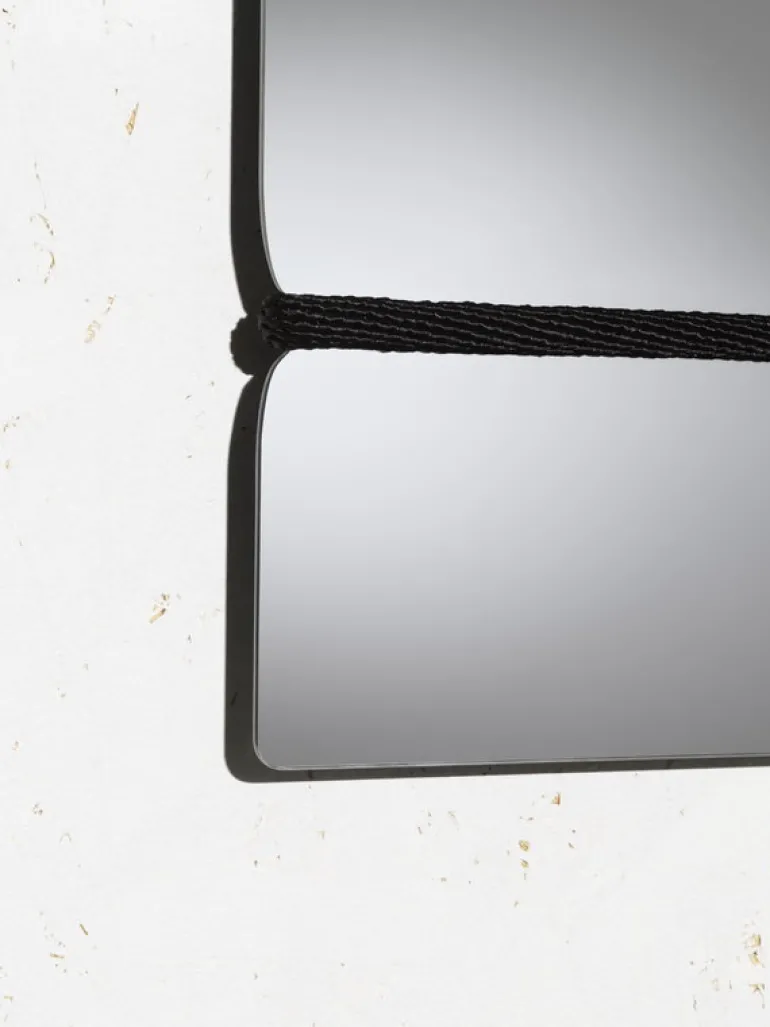 Design House Stockholms Lasso, som designades av Axel Bjurström, ger den här vanligtvis anonyma detaljen huvudrollen i rummet. Det lassoliknande repet håller spegeln stadigt på plats och ger den både ett unikt utseende och en praktisk fördel – du kan använda det för att fästa lappar eller fotografier. Tillsammans skapar det naturliga träet, den ramlösa spegeln och det mjuka repet ett fängslande intryck.