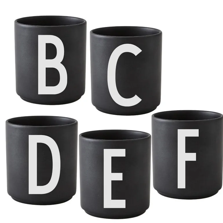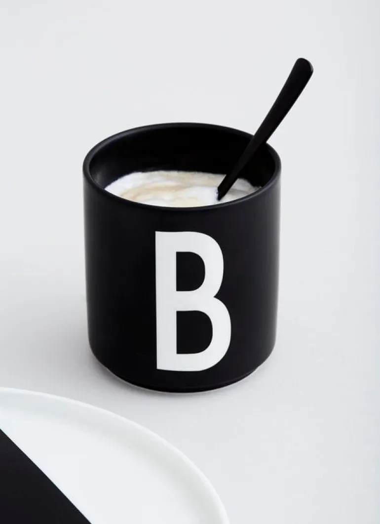 Design Letters porslinsmuggar har en bokstav i Arne Jacobsens tidlösa typsnitt, och du väljer själv vilken bokstav du vill ha. Använd muggen till kaffe, pennor, din tandborste – eller välj ett ”S” och ha socker eller salt i den. Muggarna blir också fina personliga presenter. Muggen är tillverkad av fint benporslin.