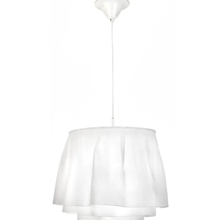 Designern Petri Vainio skapade lampan Juhla för att göra vardagen lite roligare. Pendellampan liknar fållen på en kjol och för tankarna till Art Nouveau-eran när det var vanligt att använda textil i pendellampor. Det veckade brandsäkra tyget flyter på ett livligt sätt, vilket gör varje Juhla-lampa unik. Lampan har en nordisk och romantisk själ som passar i alla typer av rum.