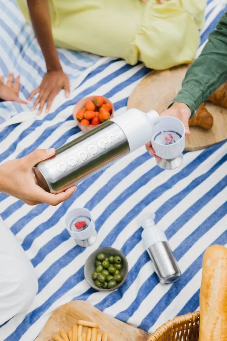 Dopper är en refillflaska, och i den kan du ta med dig färskt dricksvatten vart du än ska. Dopper, som är formgiven av Rinke van Remortel, har en trevlig och praktisk design: om du vänder upp och ned på överdelen kan du använda den som kopp med fot, och hela flaskan kan enkelt diskas för hand eller i diskmaskin. Dopper-flaskorna har blivit en självklar del av vardagen i Nederländerna och de ser inte bara bra ut, utan gör gott också: en refillflaska minskar användningen av plast och 5 % av vinsten går direkt till Dopper Foundation som stöttar vattenprojekt i Nepal genom lokala organisationer. Dopper-flaskorna har tillverkats på ett klimatneutralt sätt och är helt återvinningsbara och BPA-fria.
