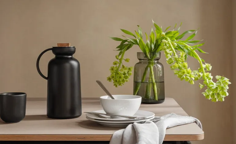 Termoskannan Silhouette från Eva Solo är den perfekta följeslagaren till långfrukostar och picknickar – kannan håller dina heta drycker varma i många timmar och är en fröjd för ögat på alla bord. Den vackra och tåliga termoskannan Silhouette har ett ytterskikt som är gjort av mattsvart plast, medan insidan är gjord i rostfritt stål. Kannan har en praktisk, droppfri hällpip som gör serveringen enkel, smidig och spillfri. Den eleganta designen kröns av ett fint handtag och en knopp i ek.
