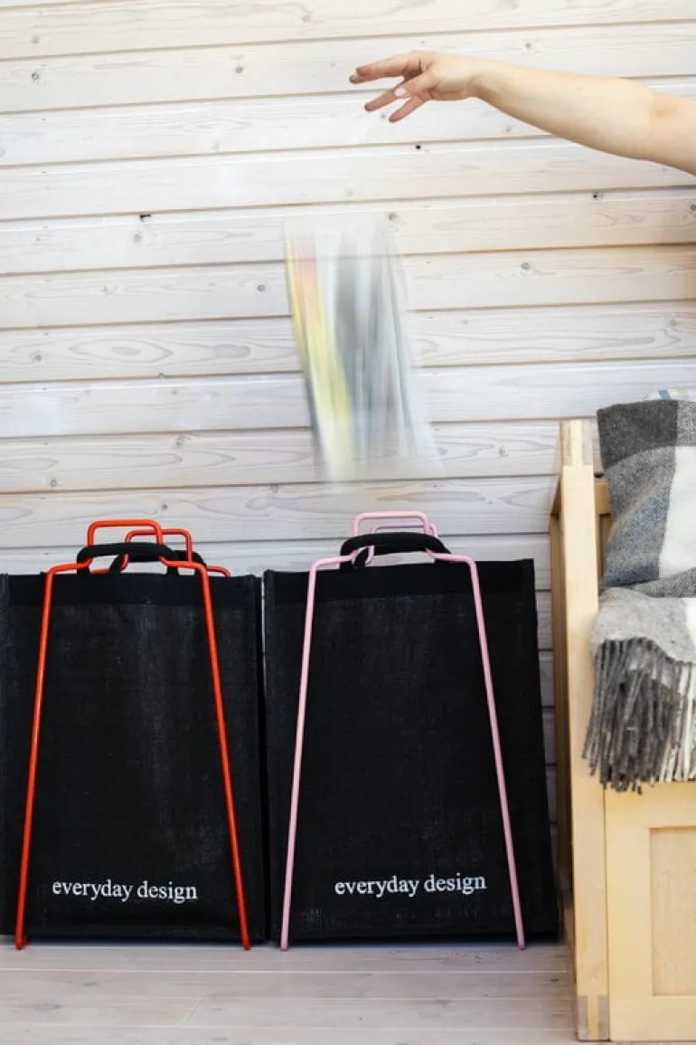 Everyday Designs papperspåshållare Helsinki är ett praktiskt hushållsredskap med estetiskt tilltalande design. Papperspåshållaren Helsinki kan användas till förvaring av tidningar, leksaker och tvätt, men också till sortering innan materialen lämnas till återvinning. Skapa en funktionell sorteringsenhet genom att ställa två hållare med påsar bredvid varandra och placera sedan en tredje påse mellan dem. Papperspåshållaren Helsinki har en enkel metallram som passar i alla utrymmen.