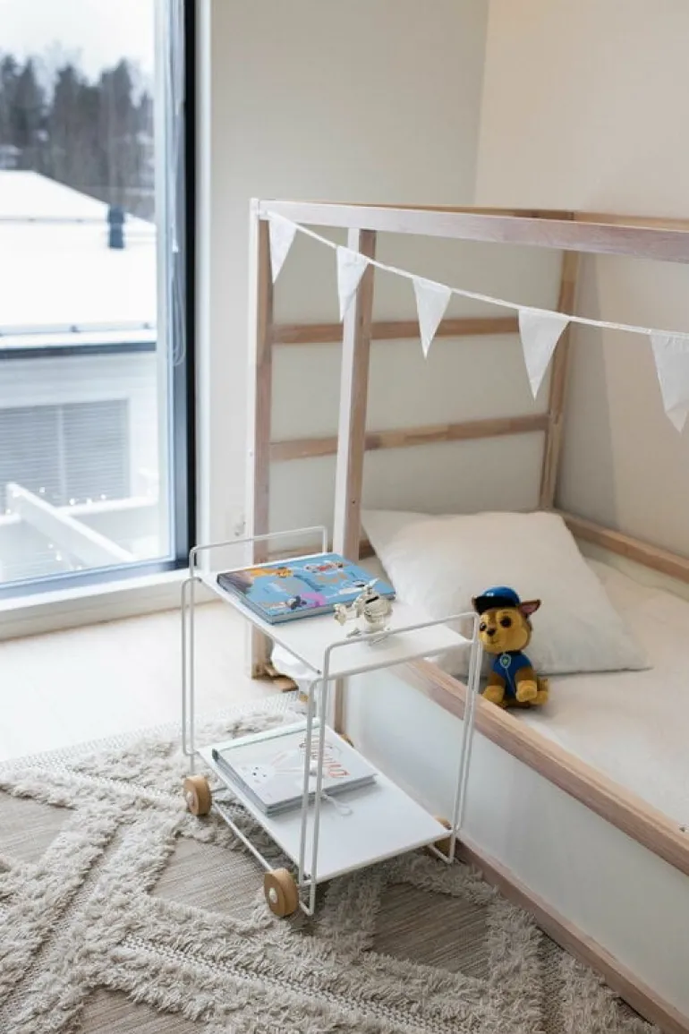 Serveringsvagnen Tampere från Everyday Design är en behändig, praktisk och smart hjälpreda som ordnar extra utrymme även till de minsta rummen. Serveringsvagnen är tillverkad av tålig metall och har hjul av asp, vars naturliga stil blir ett mjukt och värmande inslag i vagnens för övrigt industriella framtoning. Den mångsidiga vagnen Tampere kan användas som serveringsvagn till middagar, som extra sidobord i köket eller som sko- och tillbehörsvagn i hallen – möjligheterna är närmast oändliga! Serveringsvagnen, formgiven av Helena Mattila, tillverkas i Finland och har fått sitt namn efter just Tampere (Tammerfors) – den folkrikaste inlandsstaden i Norden.