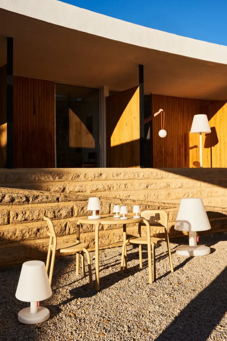 Fatboys Edison the Medium är en stor, helvit bordslampa som skjuter upp en halv meter i höjd, vilket innebär att den även gör ett strålande intryck i större rum. Den stänktåliga bordslampan, som är lämplig för både inomhus- och utomhusbruk, är utrustad med en steglöst dimbar LED-enhet, som kan styras med mobilappen Fatboy Light Control. Den klarröda nätsladden skapar en munter kontrast till den kritvita lampan. Med sin eleganta, men på samma gång fascinerande stil och tåliga konstruktion uppfyller Edison the Medium Fatboys högt ställda designkrav.