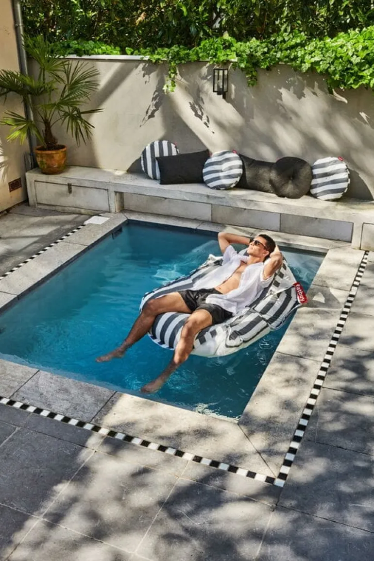 Fatboy Original Floatzac är en väderbeständig sittsäck som kan användas för avslappnande stunder både inomhus och utomhus på terrassen, balkongen eller i trädgården. Den klor- och UV-beständiga sittsäcken lämpar sig särskilt väl för en dag på stranden eller vid poolen: sittsäcken flyter, så du kan slappa i vattnet också! Original Floatzac har justerbara remmar som gör att du kan sitta upprätt. Remmarna fungerar även som handtag och gör att du kan flytta runt sittsäcken och ta upp den ur vattnet.