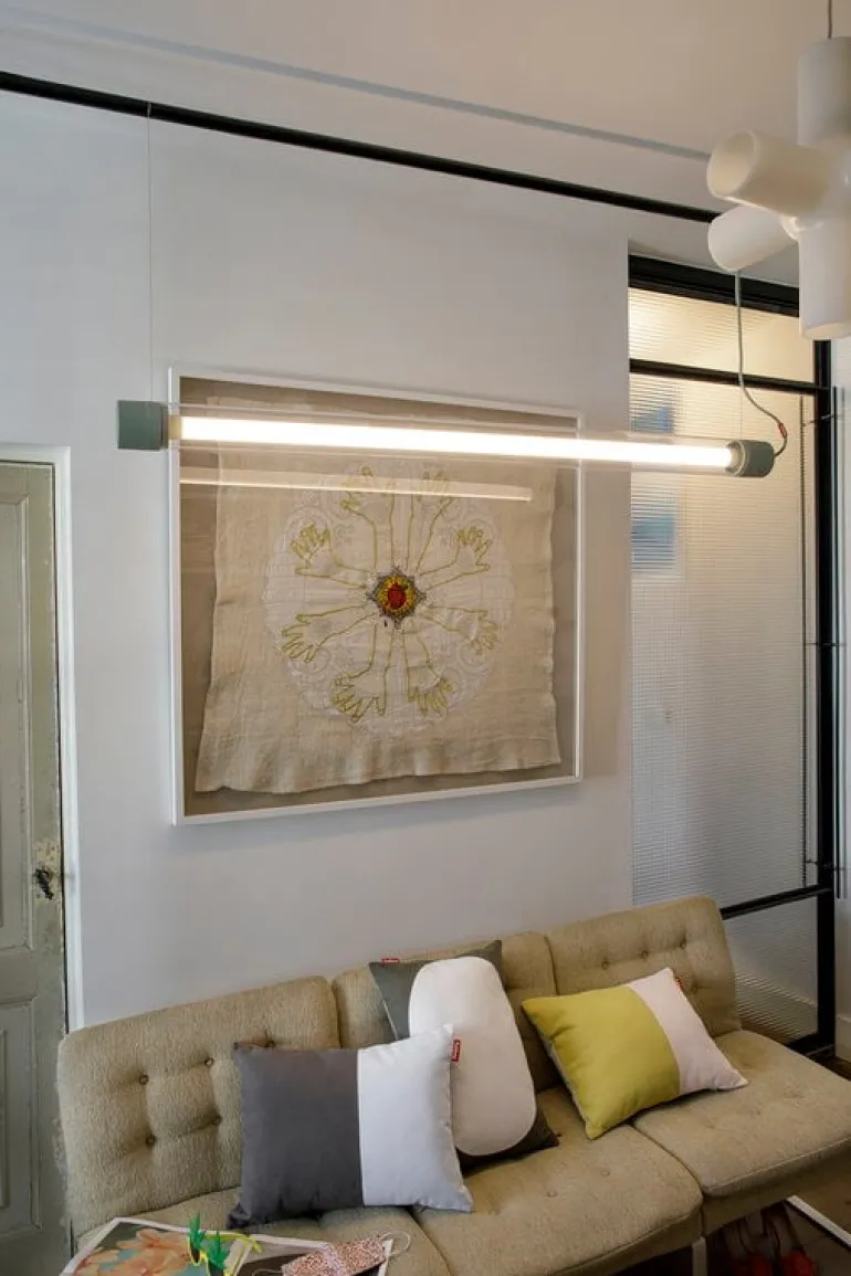 Fatboys Tjoep är en modern tolkning på en traditionell fluorescerande lampa. Med en dimbar LED-enhet kan Tjoep antingen monteras på väggen eller hängas från taket med tunna tremeterssladdar av järn. Tack vare den roterande ljuskällan går Tjoep att användas för direkt ljus eller reflekteras via väggen eller taket för ett mjukare indirekt ljus. Tjoep ger med sina färgade kanter och sladd ett avslappnat och unikt utseende som passar perfekt med alla samtida inredningar.