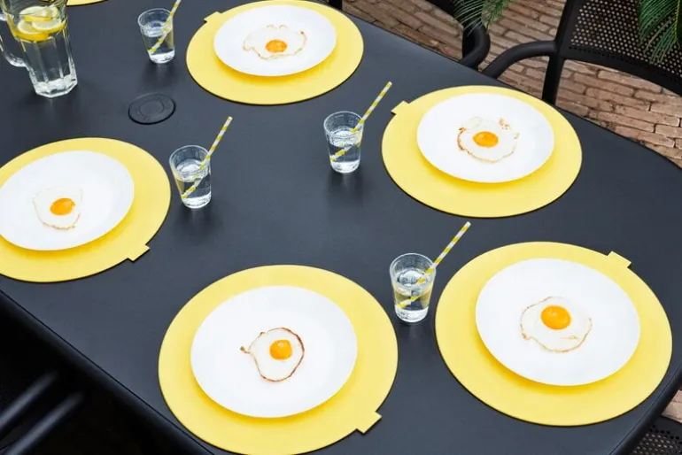 Fatboys Toni Tablo är det perfekta matbordet för trädgården; det stora, höjdjusterbara bordet har plats för upp till åtta personer. Bordet för uteplatsen har ett hål i mitten för ett parasoll vilket gör Toni Tablo perfekt för sittplatser ute även vid caféer och barer.