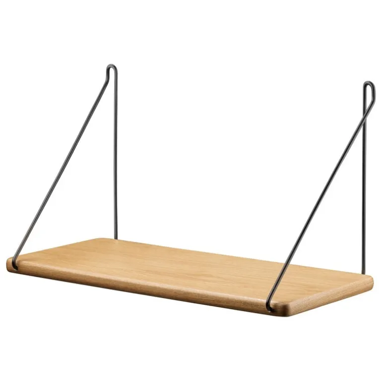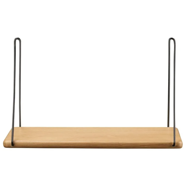 FDB Møbler’s B145 hylla, designad av Ejvind A. Johansson 1956, är en minimalistisk vägghylla som kan användas för en mängd olika ändamål. Du kan montera B145 hyllorna på väggen individuellt, i par eller i större grupper, och använda dem för att förvara och visa upp porslin, böcker, gröna växter samt dekorativa föremål. Med sin enkla klassiska stil har B145 vägghylla en lackad ekhylla och smala metallkonsoler som gör det enkelt att hänga upp den på en vägg.