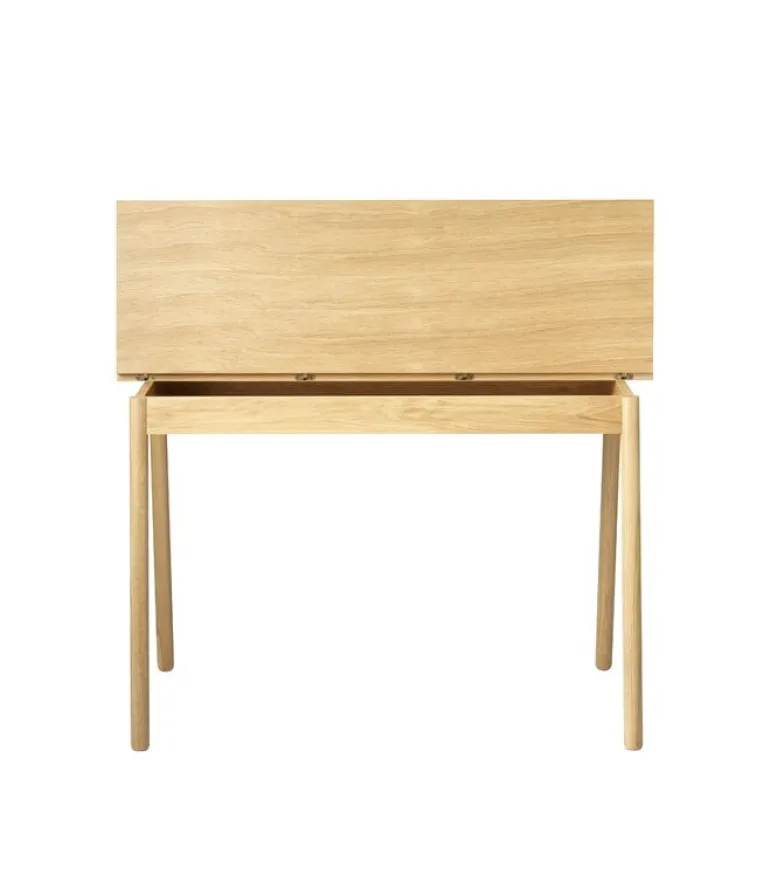 C68 Nørrebro döljer mer förvaringsutrymme än vad man först kan tro – under bordsskivan hittar du ett generöst tilltaget fack där du kan förvara papper, kontorsmaterial och kanske en bärbar dator. Den genomtänkta designen är kompletterad med en liten hylla på baksidan, vilket ger skrivbordet en stilren och funktionell finish.