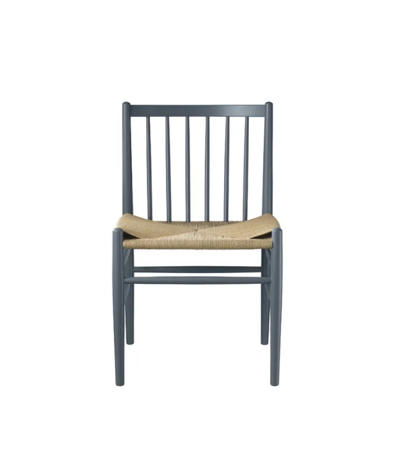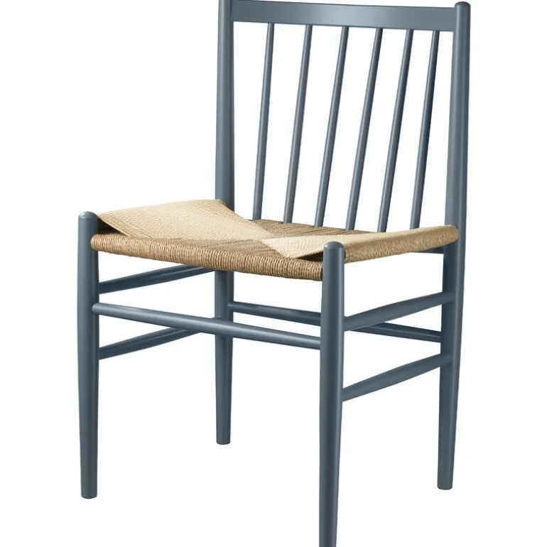 J80 stolen från FDB Møbler, designad av Jørgen Bækmark, är en attraktiv trästol med spjälor från 1950-talet. Med en vinklad ram och en distinkt, rundad rygg, är denna massiva ekstol en av ikonerna inom dansk design från mitten av 1900-talet. En sits av papperssnöre kompletterar stolens naturliga utseende, och dess funktionella form passar många olika stilar och utrymmen. J80 stolen delar liknande utseende och material med andra stolar, bänkar och pallar i J80-kollektionen.