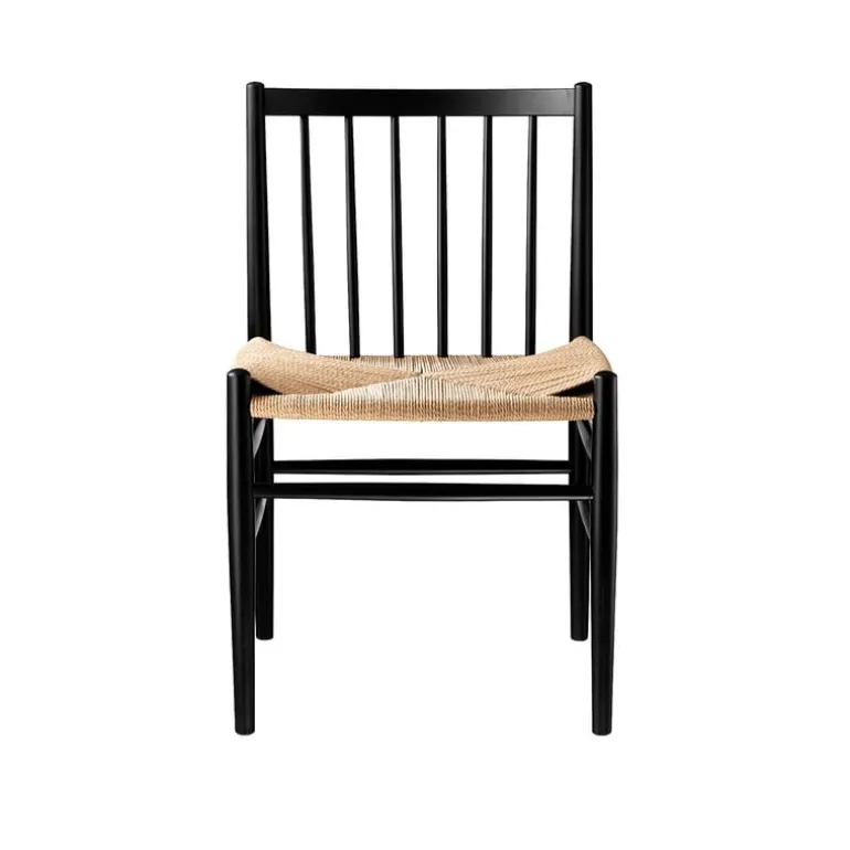 Stolen J80 från FDB Møbler, designad av Jørgen Bækmark, är en vacker pinnstol i trä från 1950-talet. Med sin kantiga ram och distinkta, rundade ryggstöd är denna stol i massiv ek en dansk designikon från mitten av 1900-talet. Sitsen i pappersgarn kompletterar stolens naturliga look, och dess funktionella form passar olika stilar och utrymmen. Stolen J80 och övriga stolar, bänkar och pallar i kollektionen J80 använder liknande material och är lika varandra till utseendet.