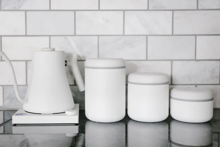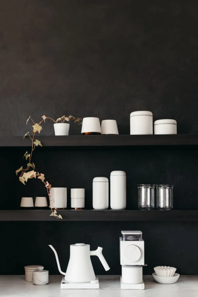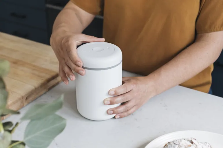 Stålburken Atmos från Fellow håller dina kaffebönor fräscha och aromatiska – eller varför inte också müsli, nötter eller kakor för att nämna några exempel? Den minimalistiska kaffeburken är utrustad med ett lufttätt lock med inbyggd vakuumpump som suger ut luften från burken, vilket ökar hållbarhetstiden för dina kaffebönor med upp till 50 procent. Burken öppnas med en praktisk utlösningsknapp som återställer lufttrycket till det normala.