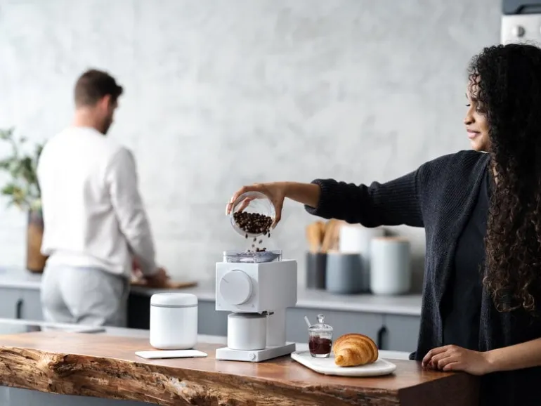 Stålburken Atmos från Fellow håller dina kaffebönor fräscha och aromatiska – eller varför inte också müsli, nötter eller kakor för att nämna några exempel? Den minimalistiska kaffeburken är utrustad med ett lufttätt lock med inbyggd vakuumpump som suger ut luften från burken, vilket ökar hållbarhetstiden för dina kaffebönor med upp till 50 procent. Burken öppnas med en praktisk utlösningsknapp som återställer lufttrycket till det normala.